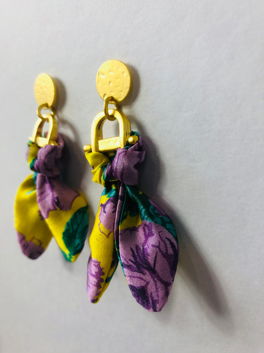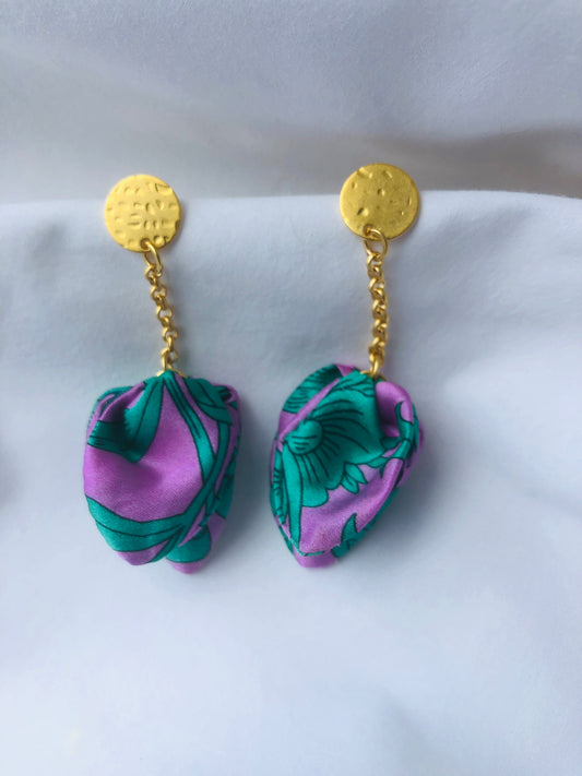 Silk Petal Earrings | Liberty Print | Purple Turquoise