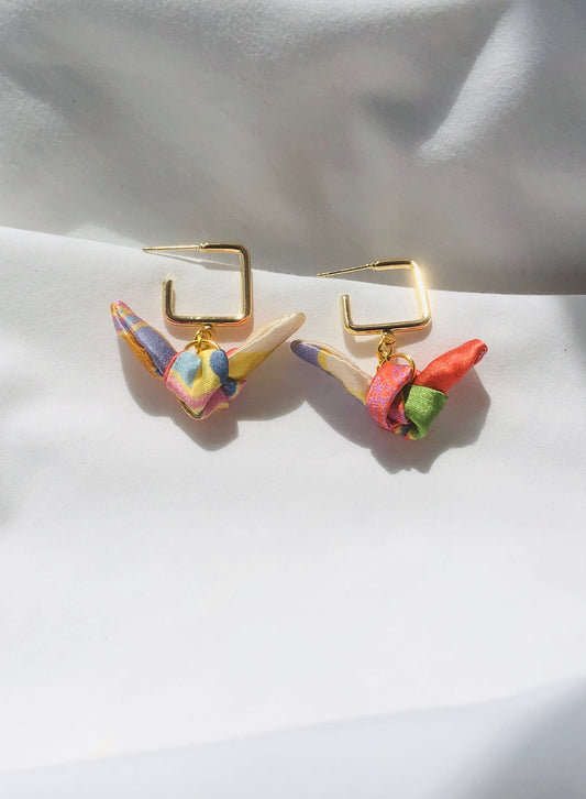 Square Hoop Silk Earrings | Liberty Print | Pastel