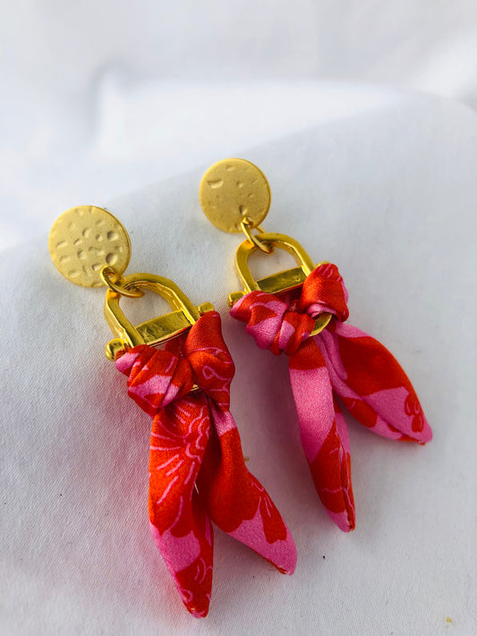 Statement Earrings | Silk Jewellery | Liberty Print | Pink and Red