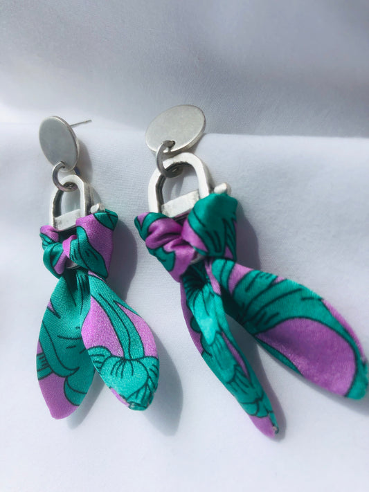 Silver Plated Charm Silk Earrings | Liberty Print | Purple Turquoise