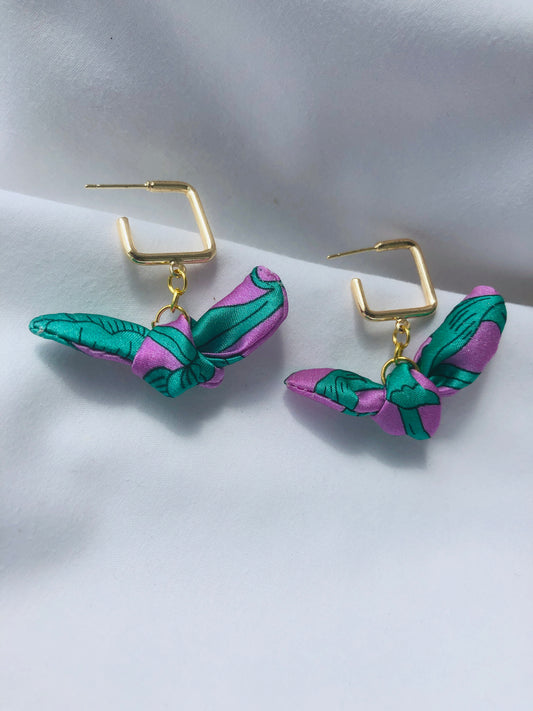 Square Hoop Silk Earrings | Liberty Print | Purple Turquoise