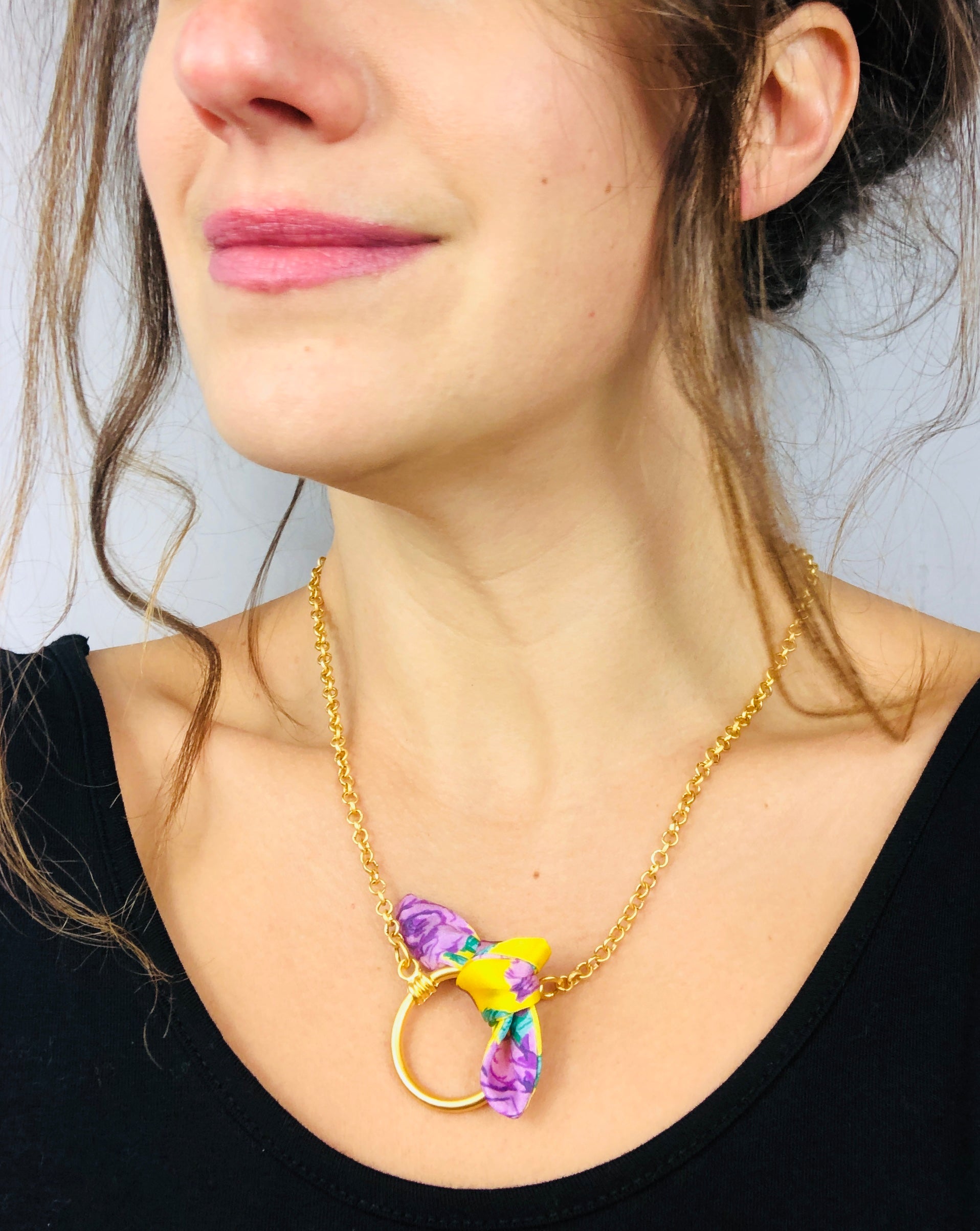 Introducing our elegant gold circle pendant necklace, a unique blend of elegance and individuality. This timeless necklace features a stunning Liberty print silk tie wrapped around a gold plated pendant. Each piece is handmade, ensuring its unique charm. Elevate your look with this elegant gold necklace, perfect for any occasion