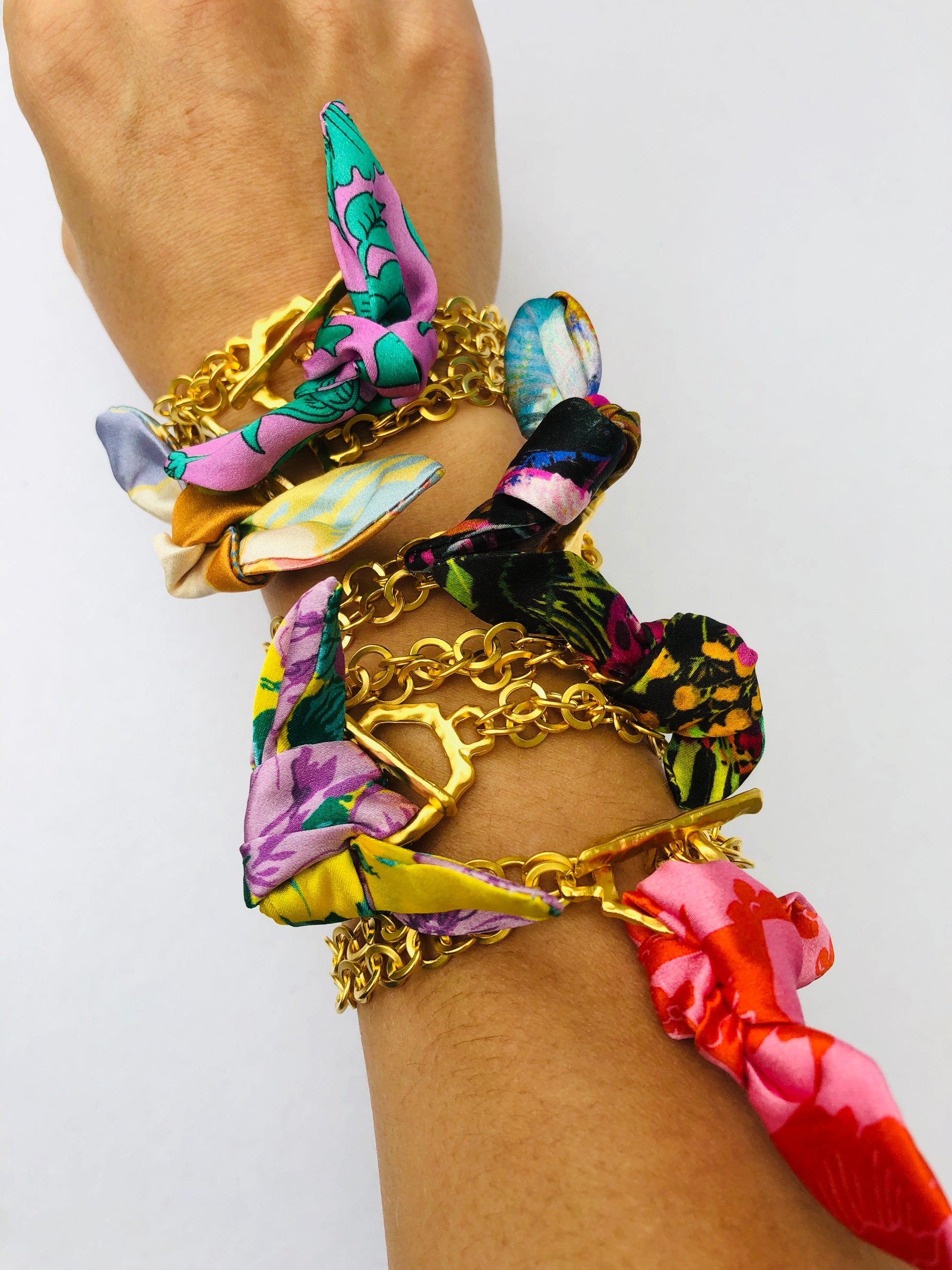Discover the charm of our unique handmade gold-plated bracelets. Each piece features chic Liberty London silk prints, adding a touch of elegance to your ensemble. Elevate your look with our stylish and timeless bracelets, perfect for any occasion. Shop now and add a dash of class to your jewelry collection!