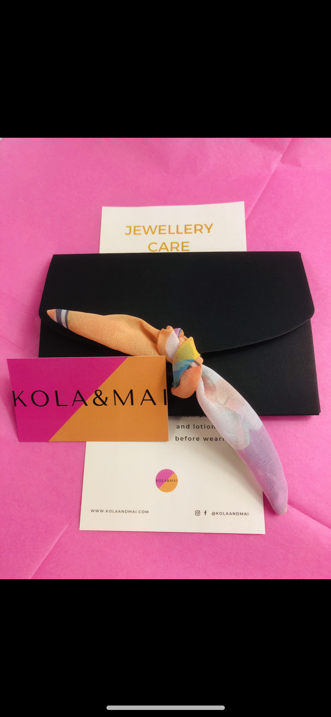 All purchases come beautifully presented in gift packaging. You can choose between a branded handmade linen pouch or a simple black card envelope pouch, both beautifully tied with a silk ribbon.