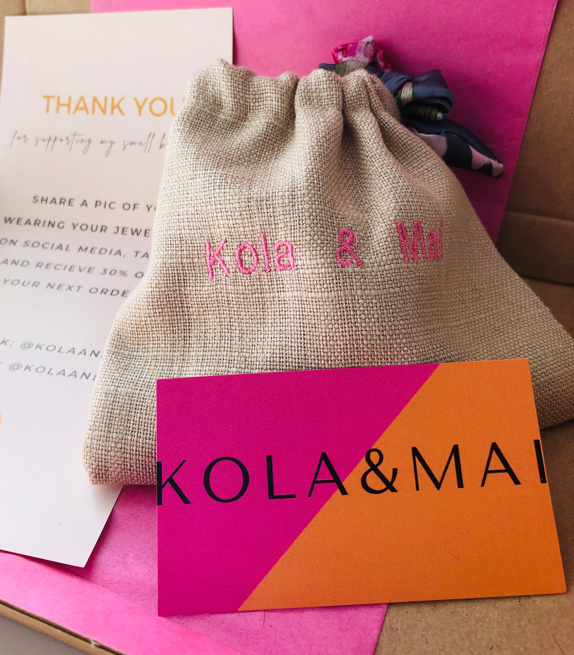 All purchases come beautifully presented in gift packaging. You can choose between a branded handmade linen pouch or a simple black card envelope pouch, both beautifully tied with a silk ribbon.
